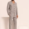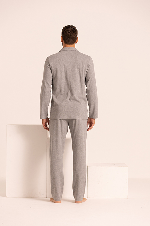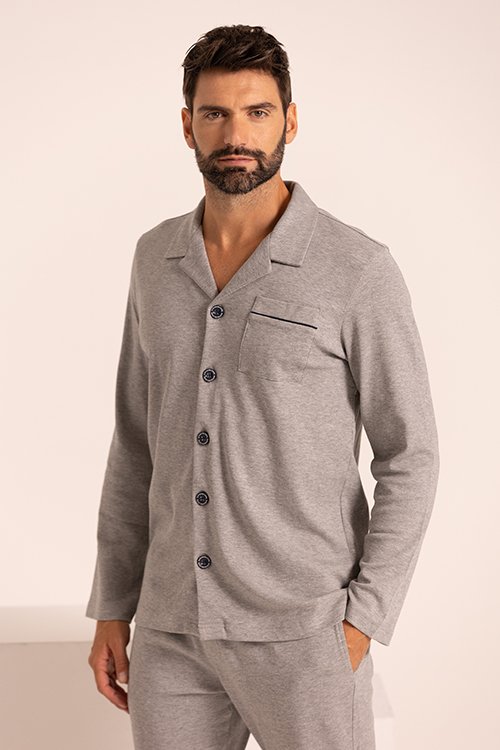 Pigiama da uomo dal design tradizionale, in puro cotone, con pantaloni morbidi e leggermente larghi e l’immancabile giacca con chiusura a bottoni, ampio revers e taschino laterale. Perfetto per l’uomo che desidera essere sempre impeccabile durante i sogni e per le giornate di relax in casa. Composizione: interlock garzato internamente 100%CO.