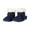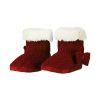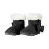 Stivaletto in maglieria tricot lavorato a losanghe con fodera in soffice e calda pelliccia in contrasto colore. Un fiocco in maglieria sulla caviglia arricchisce il capo. La suola è stampata antiscivolo.