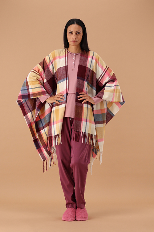 Mantella in morbido tessuto jacquard dalla mano cachemire. Calda e avvolgente è una vera coccola quando ci si sveglia e nei momenti di meritato relax. Proposta in 3 quadri di dimensioni e colori diversi, si abbina ai capi della nostra collezione. Per le donne amanti della comodità che non vogliono tralasciare lo stile può essere utilizzata benissimo fuori casa come elegante accessorio dall’aspetto prezioso.