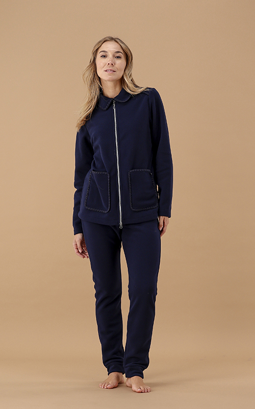 Completo in pile full zip con bordi in “punto étoile” molto confortevole e raffinato. Il pile è un materiale caldo e morbido, ideale per i mesi più freddi, mentre il dettaglio ricamato che crea piccoli motivi simili a stelle aggiunge un tocco elegante e ricercato al capo donando un aspetto delicato e sofisticato.