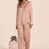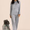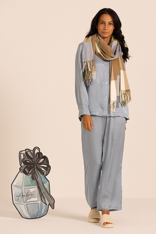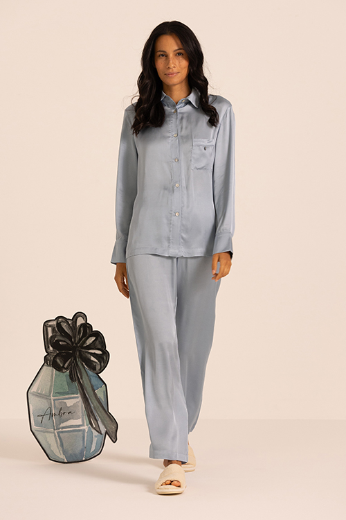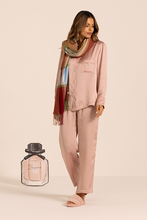 Completo pigiama dal taglio maschile composto da giacca aperta con bottoni, taschino e pantalone palazzo lungo. Elegante e prezioso questo pigiama è arricchito da piping in contrasto colore che ritroviamo anche sul fianco del pantalone. Il tessuto è a navetta in tela di viscosa: morbido, fresco, traspirante ed estremamente piacevole a contatto con la pelle. Elegantemente moderno è proposto in una vasta gamma di colori.