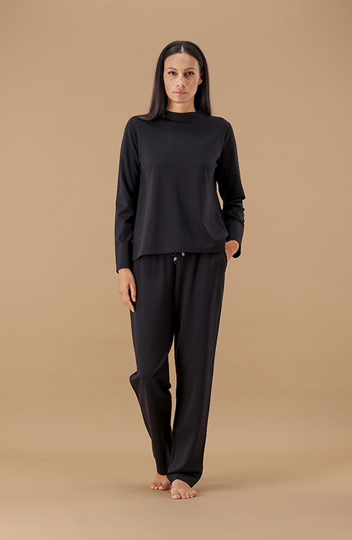Bellissimo completo in morbido tessuto a maglia invernale con peso leggero, ideale sia per stare in casa che per uscire. Oggi infatti la tuta indossata sotto al cappotto è un outfit fashion e soprattutto comfy. La vestibilità di questo completo è morbida, la maglia con collo a cratere è leggermente lunga ed il pantalone è baggy con tasche alla francese: un homewear pensato per essere comode e sempre perfette in e fuori casa.