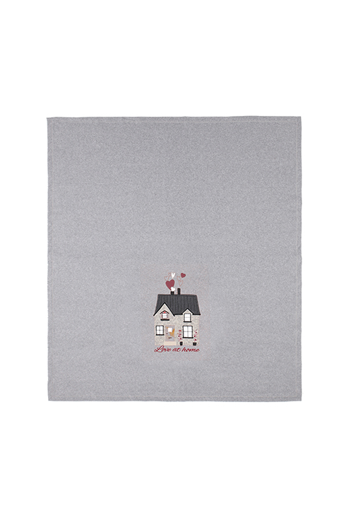 Un plaid in pile, arricchito da una dolce casetta ricamata e impreziosita da dettagli in lana cotta e finta pelle. Il camino della casetta emette simpatici cuoricini, creando un’atmosfera accogliente e romantica. I colori caldi e femminili aggiungono un tocco di tenerezza e stile, perfetto per rendere ogni ambiente più caloroso e invitante.